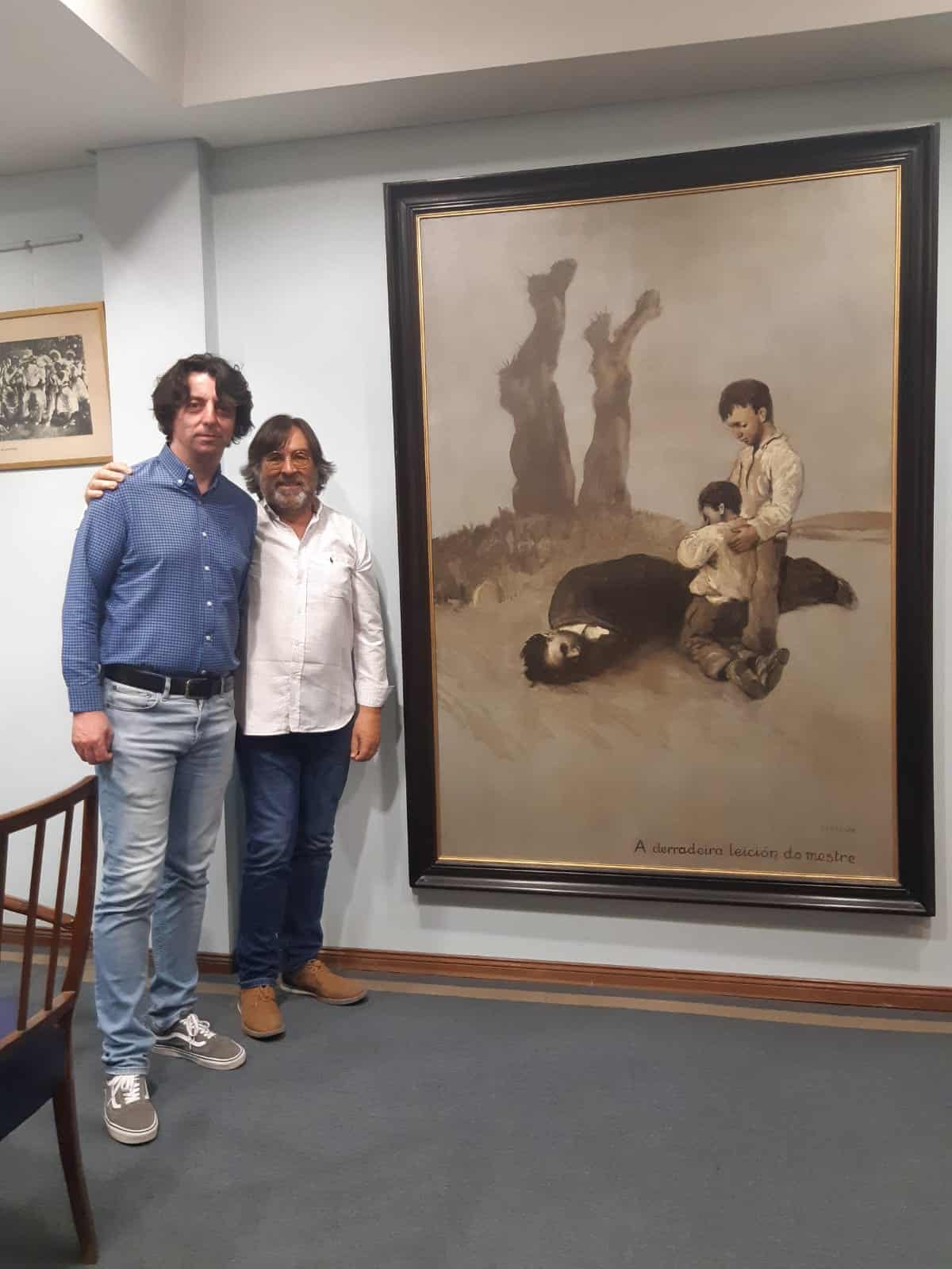O vicepresidente da Deputación de Pontevedra, Rafael Domínguez, e José María Vila Alén, presidente do Centro Galicia de Bos Aires (custodio da obra), anunciaron onte que as negociacións para a cesión do cadro de Castelao «A derradeira lección do mestre» están moi avanzadas.