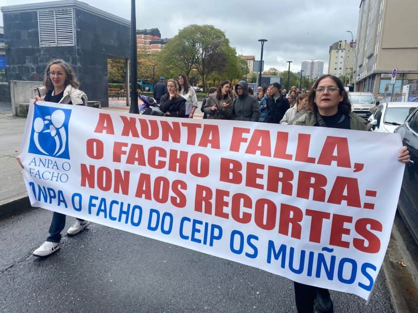 As familias estivemos hoxe protestando diante da Delegación de Educación da Coruña, xunto co profesorado, que estaba tamén demandando unha atención ao rural e que se cubran as prazas de PTs. Entregamos no rexistro de educación máis de mil sinaturas da veciñaza esixindo atención especializada e adecuada para os nosos nenos e nenas. O profesorado, as direccións e as familias imos nisto a unha porque nos xogamos que nos recorten dereitos para o alumnado máis vulnerable.