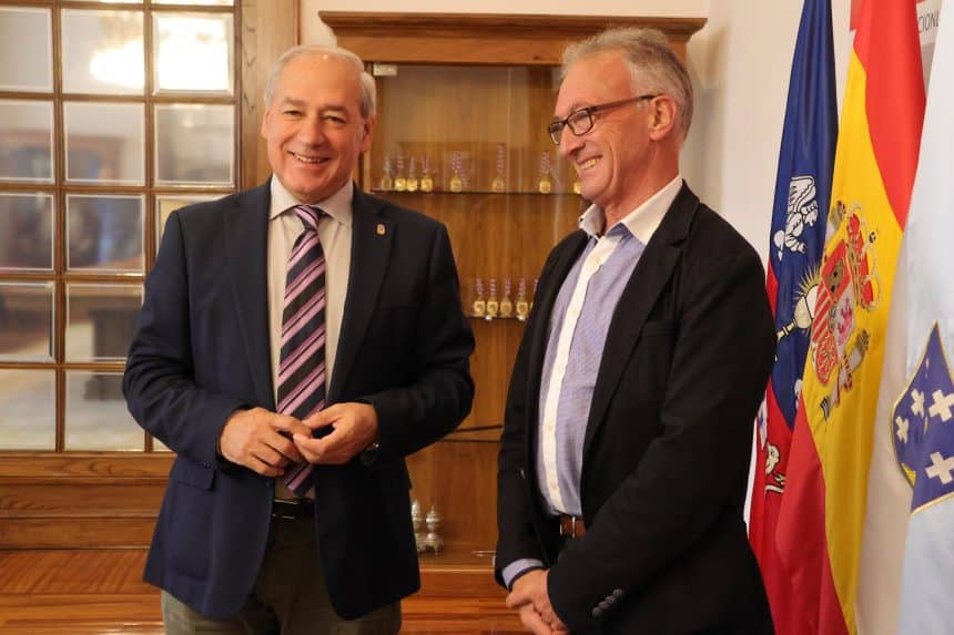 O Presidente, José Tomé Roca, e o Alcalde, José Luis Raposo Magdalena, veñen de asinar no Pazo de San Marcos un convenio de colaboración para acondicionar o firme nas rúas Observatorio e Vía Romana e no acceso ao Mercado Gandeiro.
