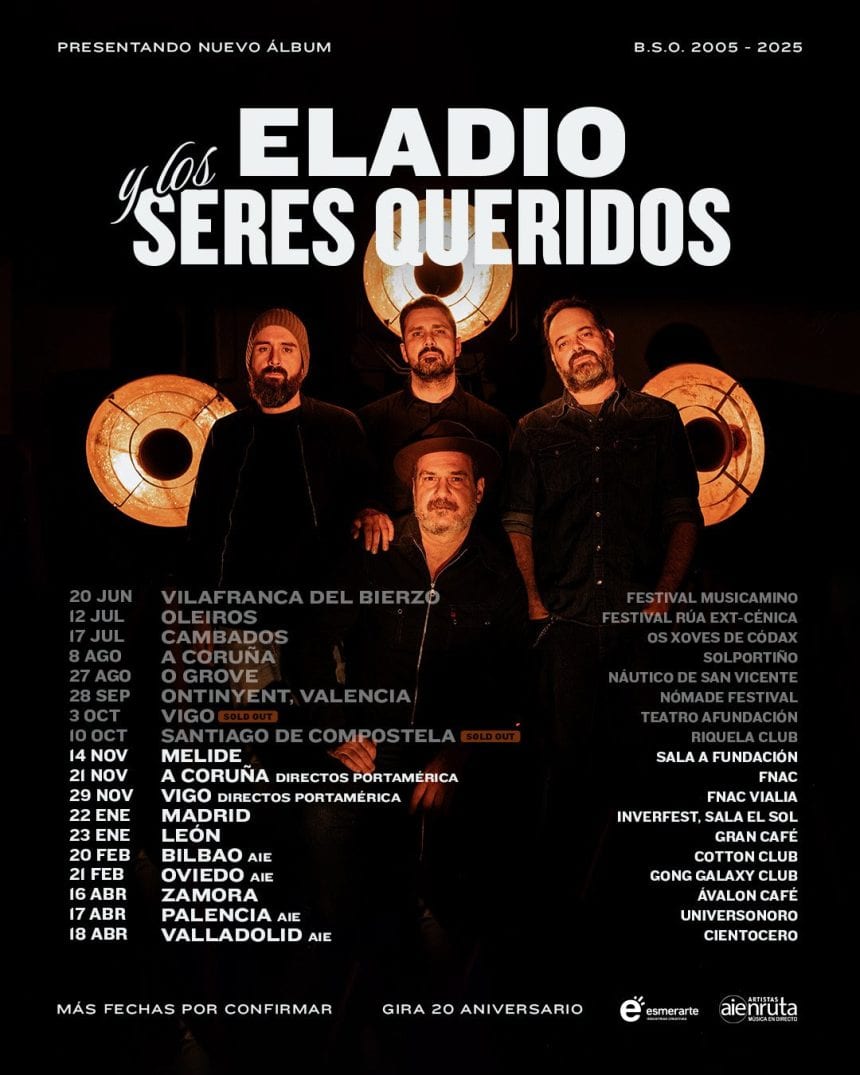 Después de un año marcado por la celebración de su 20º aniversario, Eladio y Los Seres Queridosponen rumbo a 2026 con una nueva gira de salas por el territorio nacional. La banda liderada por Eladio Santos volverá a la carretera con un formato cercano y emocional, fiel al espíritu que los ha convertido en una de las formaciones más queridas del panorama independiente.