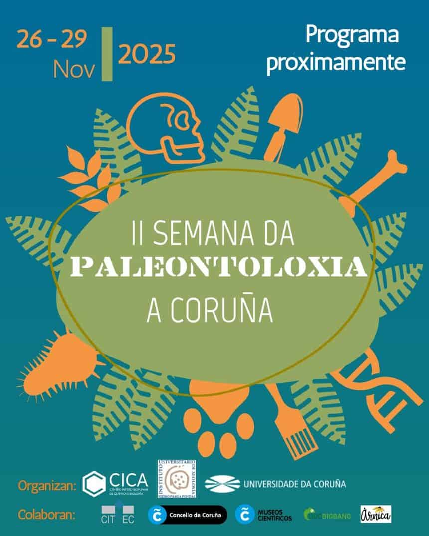 A Coruña celebrará do 26 ao 29 de novembro de 2025 a II Semana da Paleontoloxía, unha iniciativa organizada polo Centro Interdisciplinar de Química e Bioloxía (CICA) e o Instituto Universitario de Xeoloxía (IUX) da Universidade da Coruña. O evento conta coa colaboración do CITEEC, os Museos Científicos Coruñeses, a Asociación de Divulgación Científica UDC Big Bang, o Concello da Coruña e o Bar Árnica, que volverá a converterse nun dos espazos destacados da divulgación científica na cidade.