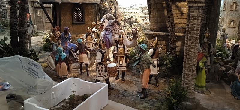 El Belén incorpora también nuevas figuras realizadas por Juan Miguel de la Rosa, entre las que sobresalen los Pajes de los Reyes Magos y una innovadora representación del Rey Gaspar a lomos de un camello, en contraste con su imagen tradicional como figura adorante.