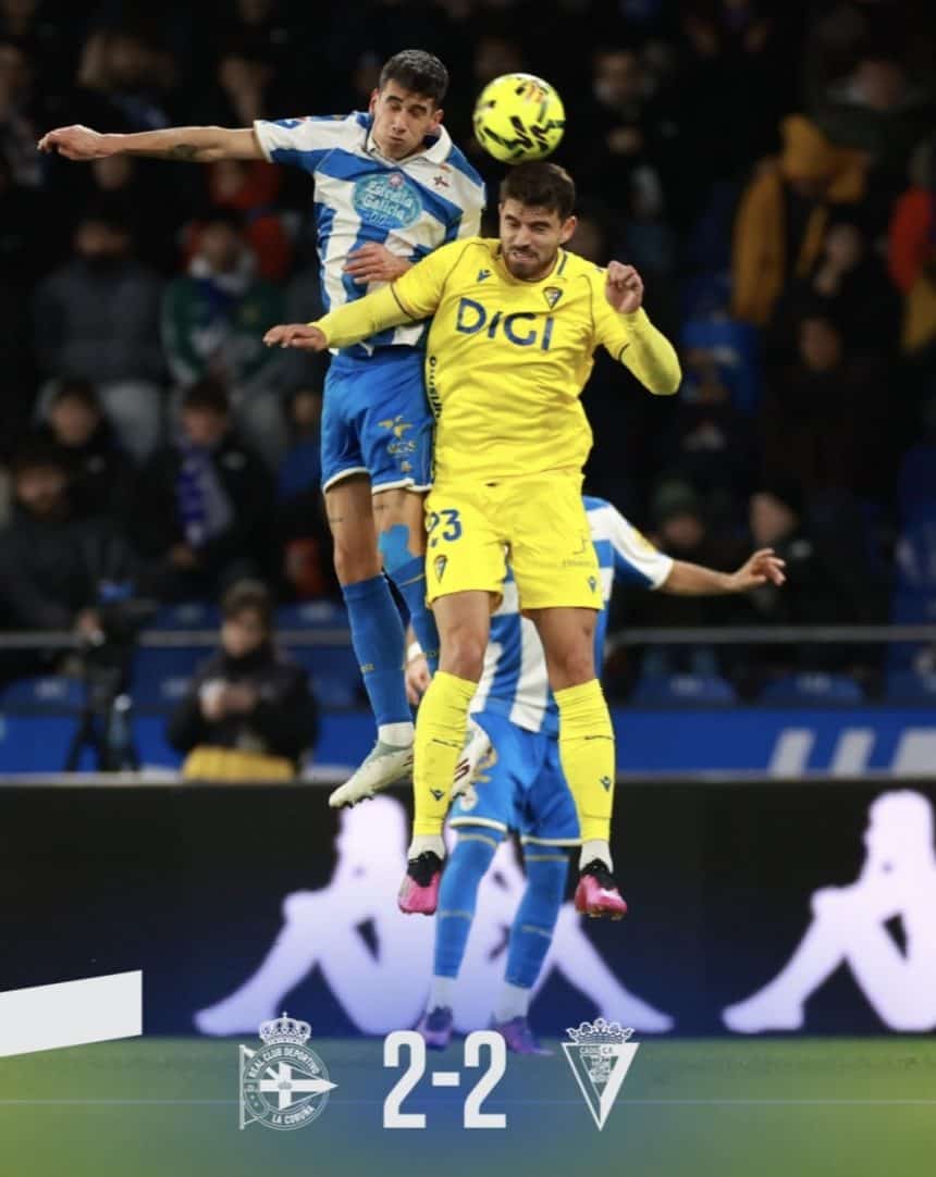 En la segunda parte salió mucho mejor el Cádiz, de hecho el Cádiz logró el definitivo empate por mediación de Tabatadze que hacen que el conjunto coruñés solo sume un punto de doce posibles y con una salida ante Las Palmas la próxima semana.