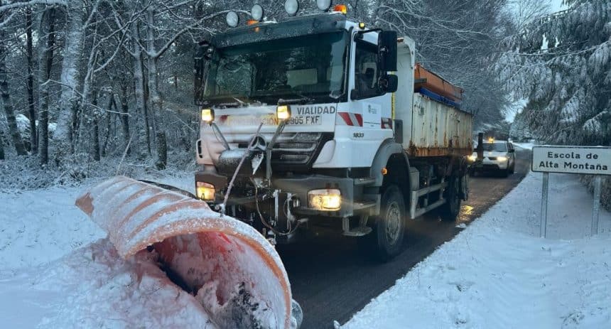 - Nieve en niveles bajos: La jornada comienza con la cota de nieve situada entre los 400 y 500 metros, afectando principalmente al cuadrante suroriental y a la mitad oriental de la provincia de Lugo. A medida que avance el día, el aire frío se retirará, subiendo la cota a los 1.000 metros al mediodía y hasta los 1.500 metros al final de la jornada.