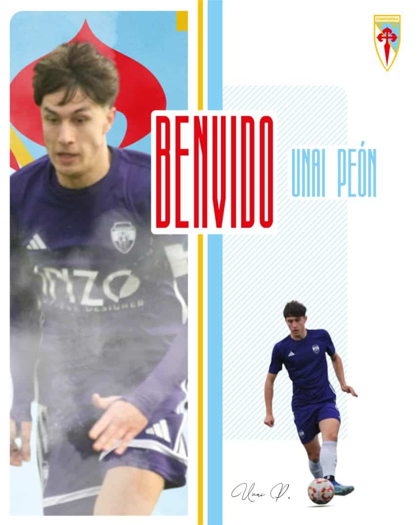 La SD Compostela sigue reforzándose para la segunda vuelta: Unai Peón Cuesta (San Sebastián, 18/04/2004) es nuevo jugador compostelanista. El joven mediocentro, de 21 años, llega procedente del Atlético Coruña Montañeros y firma hasta junio de 2027.