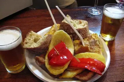 Aquí, la historia se sirve entre platos de bacalao y copas de vino tinto, espumoso y vino verde LAS CATEDRALES y otro blancos más…: