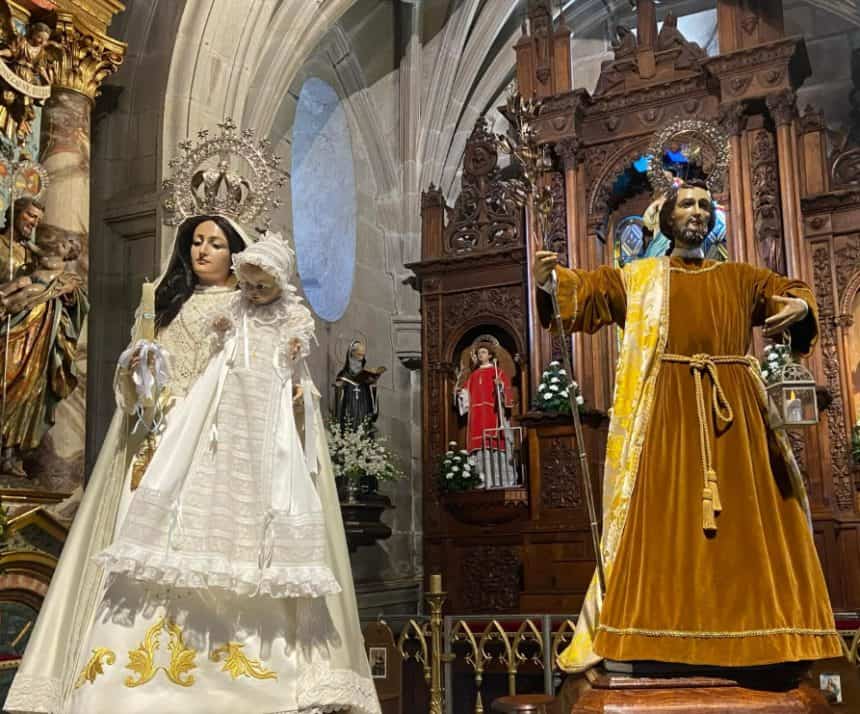 De regreso al interior de la excolegiata de Cangas, las imágenes de la Virgen y San José realizan las bendiciones y las tres reverencias, tras las cuales varios niños sueltan dos palomas blancas, símbolo de pureza y humildad. A continuación, se celebra la solemne Eucaristía del día.