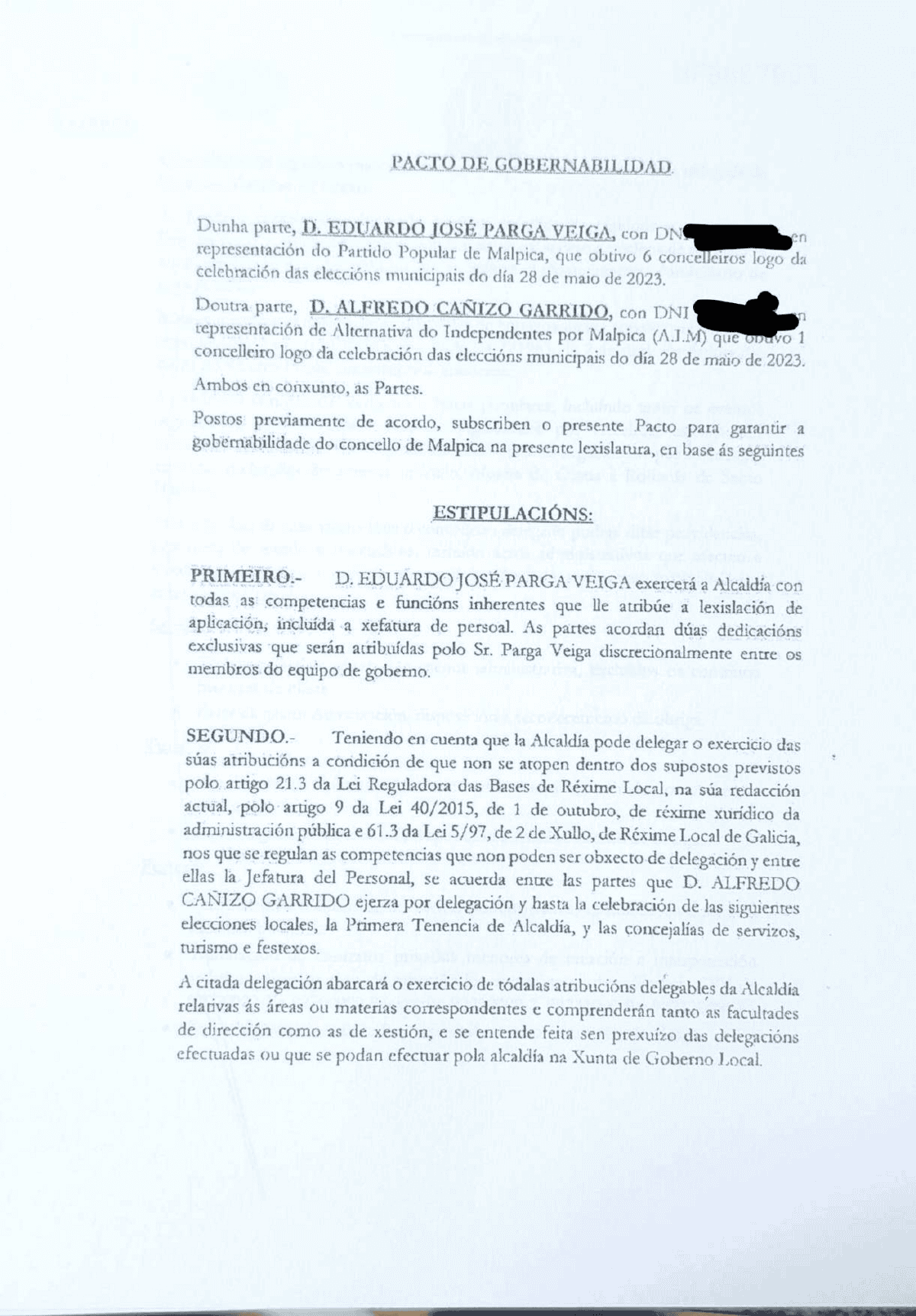 Hoxe subo aquí as partes clave do Pacto de Gobernabilidade que asinei ante Notario co Partido Popular en xuño de 2023. Quero que o leados vós mesmos e saquedes as vosas conclusións.