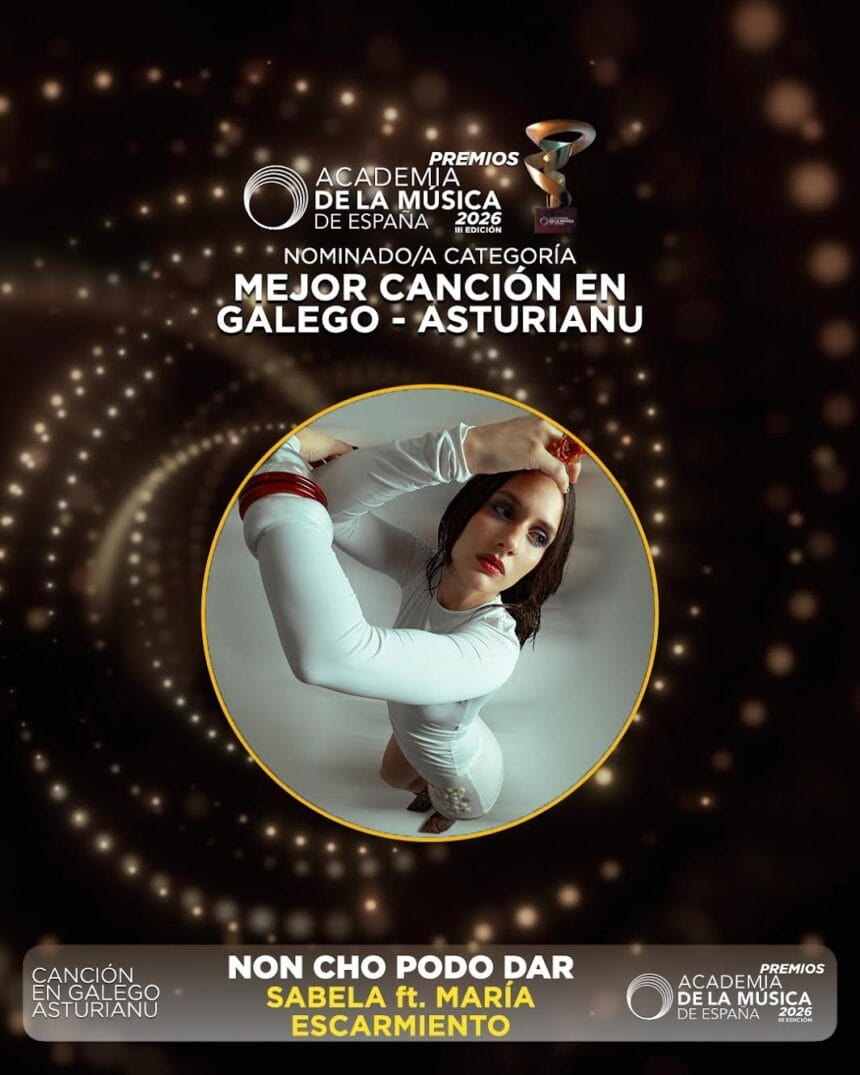 A cantante galega Sabela volve a obter un novo recoñecemento a nivel estatal co anuncio de finalista a Mejor Canción en Galego/Asturianu por Non cho podo dar, o seu tema xunto a María Escarmiento, nos Premios de la Academia de la Música de España. Esta mañá déronse a coñecer os finalistas destes galardóns outorgados pola Academia, formada por artistas, autores, produtores, editores, xestores, promotores e outros profesionais do sector co fin de estimular e proclamar a excelencia, a solidariedade, o talento, o traballo e o esforzo entre a comunidade musical do estado.