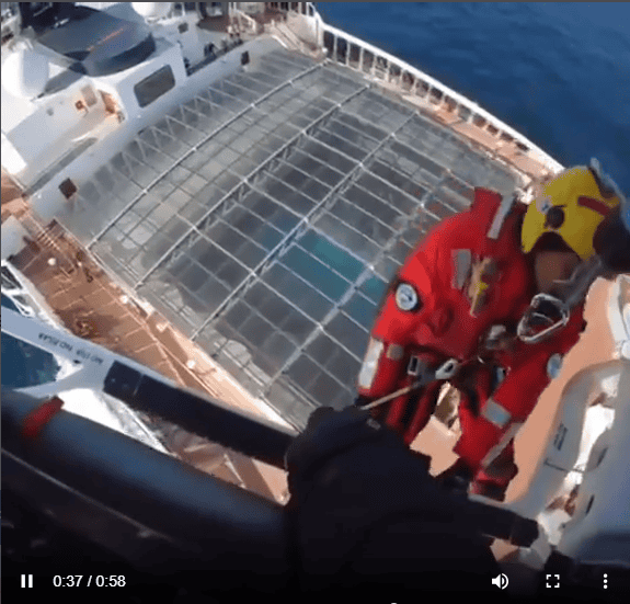 As imaxes falan por si soas. O noso helicóptero Pesca 1, con base en Vigo, realizou un adestramento de precisión na bocana da ría co cruceiro MSC Preziosa. Un coloso de 333 metros de eslora e capacidade para máis de 5.600 persoas.