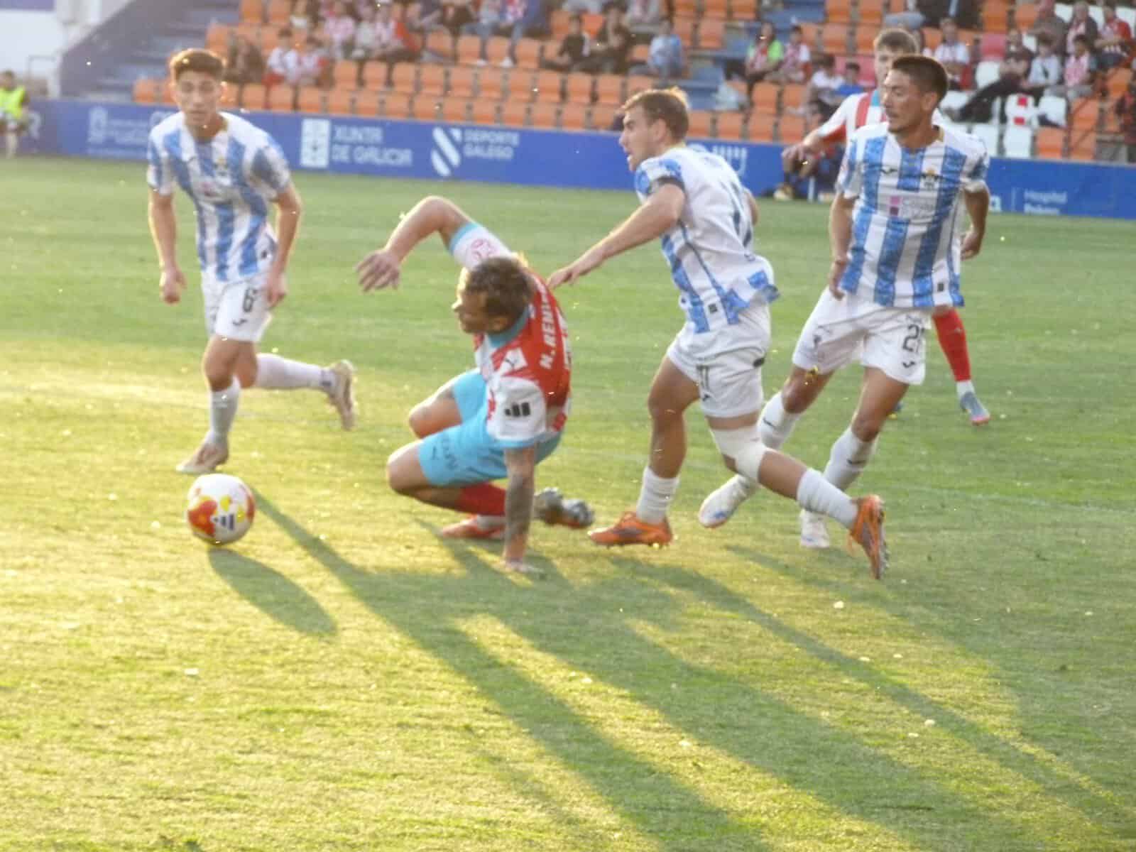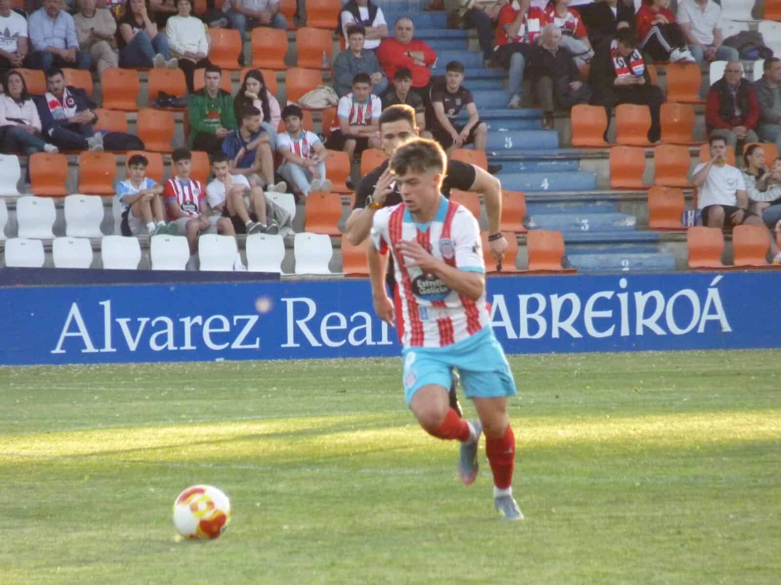 CD Lugo: 13. Íker Pieedra; 20. Iago López, 16. José Amo, 4. Pablo Trigueros, 6. Pere Haro (2. Yago Rodríguez, m. 78); 14. Kevin Presa (25. Borja Sánchez, m. 70), 8. Álex Balboa; 11. Víctor Pastrana (5. Álex Gallar, m. 11), 9. Neco Celorio (19. Íker Unzueta, m. 78), 7. Jorge González (23. Lago Junior, m. 46); y 15. Nico Reniero.