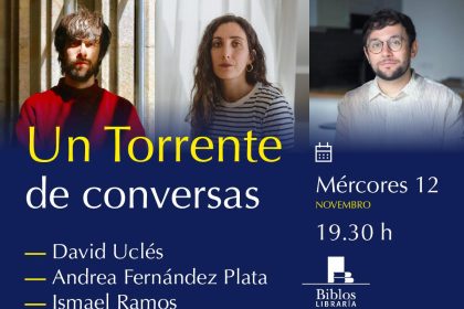 Os escritores David Uclés, Ismael Ramos e Andrea Fernández Plata protagonizan a cuarta edición de “Un Torrente de Conversas” da Deputación da Coruña