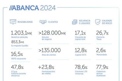 ABANCA gaña 1.203 M€, cunha rendibilidade recorrente do 16,5%