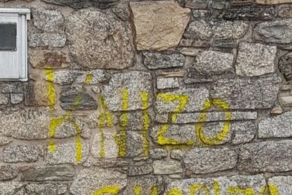Cañizo, concelleiro de festexos de Malpica, píntanlle as portas e a parede da súa casa