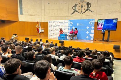 Os triatletas Jarno Pousada e Antonio Serrat comparten as súas experiencias con estudantes lucenses na Delegación da Xunta