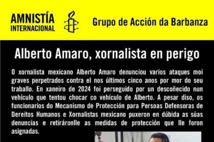 Amnistía Internacional Galicia organiza unha xira co xornalista mexicano Alberto Amaro